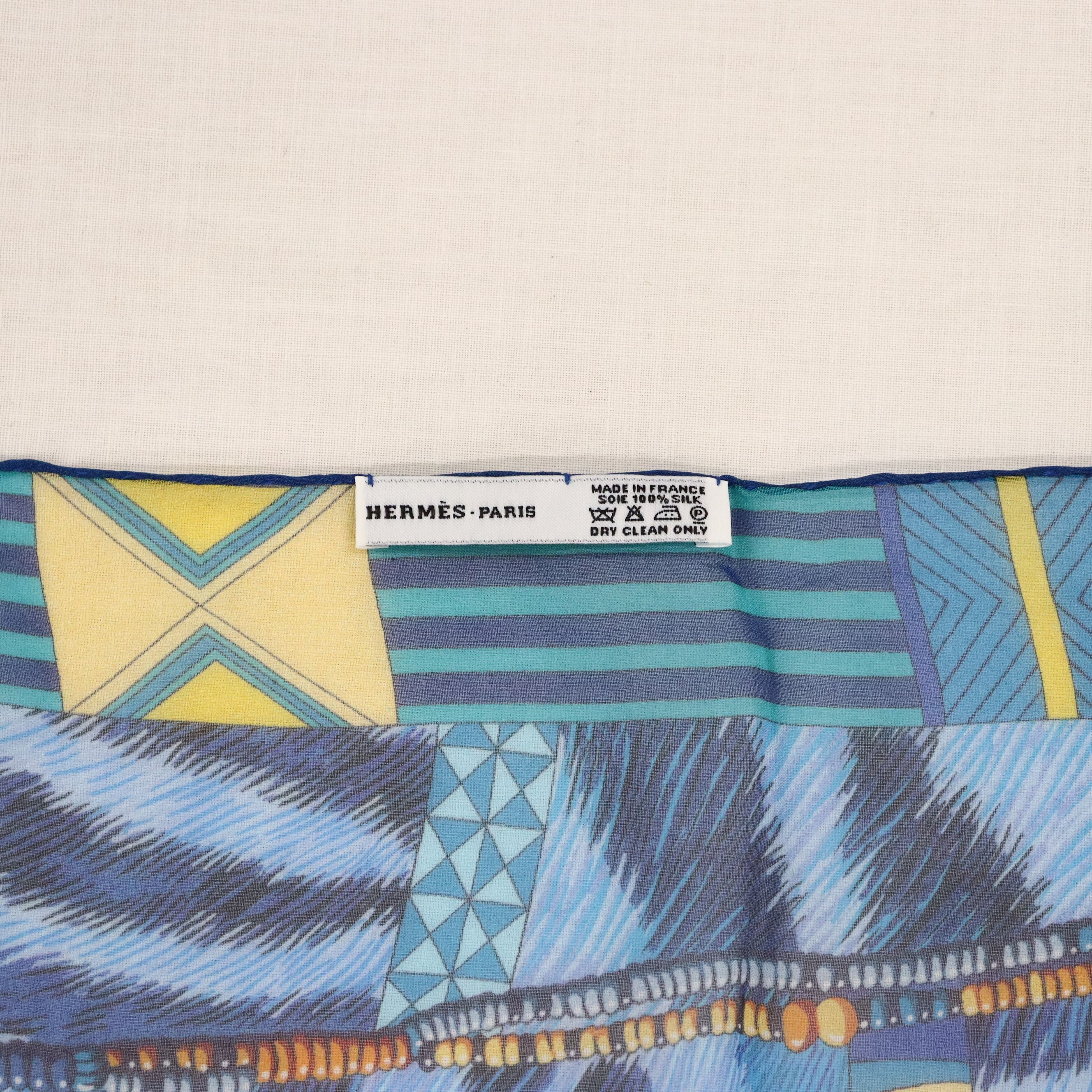 未使用品 HERMES エルメス ショール 180cm PELAGES ET CAMOUFLAGE 野生とカモフラージュ シルクモスリン シフォン 青 22-0224