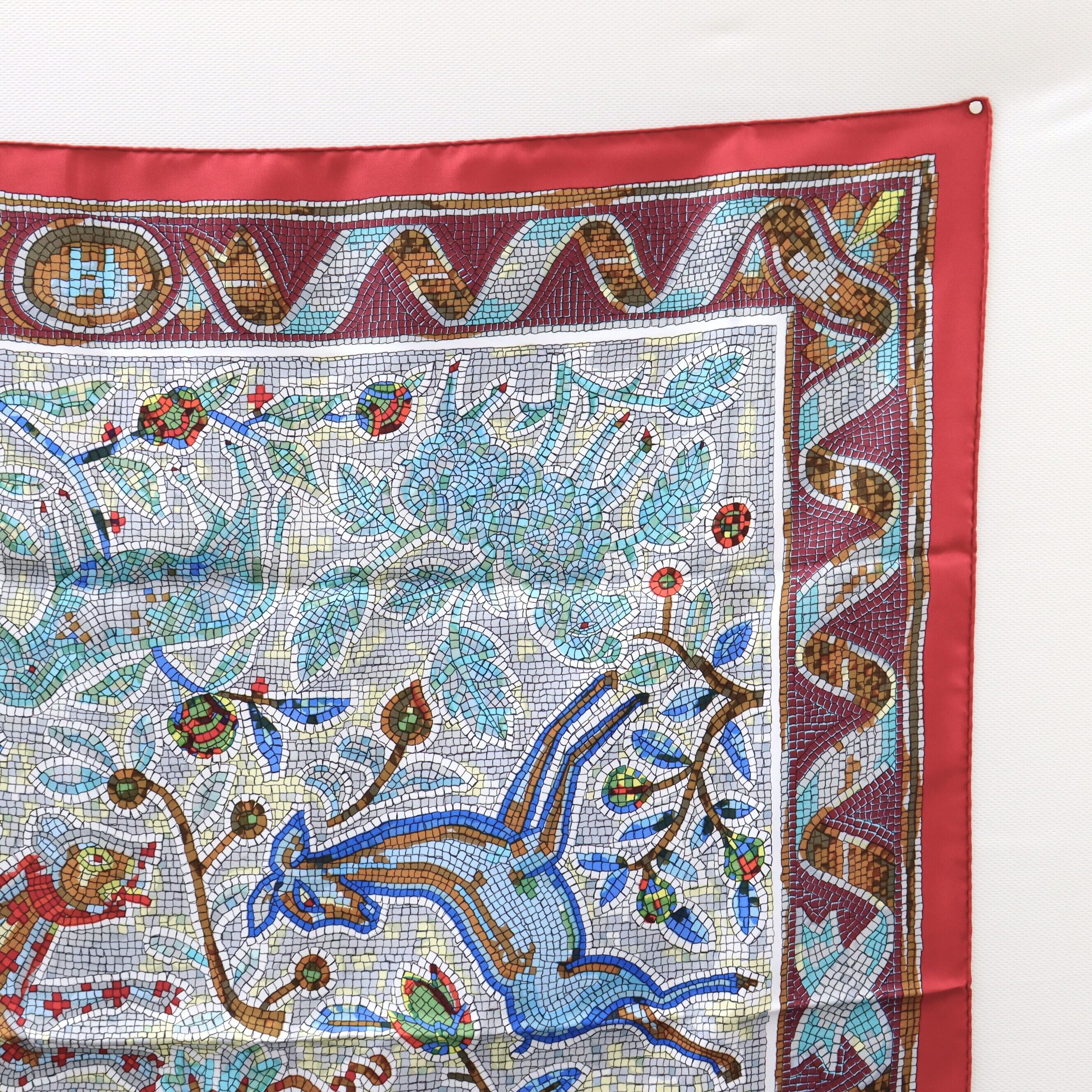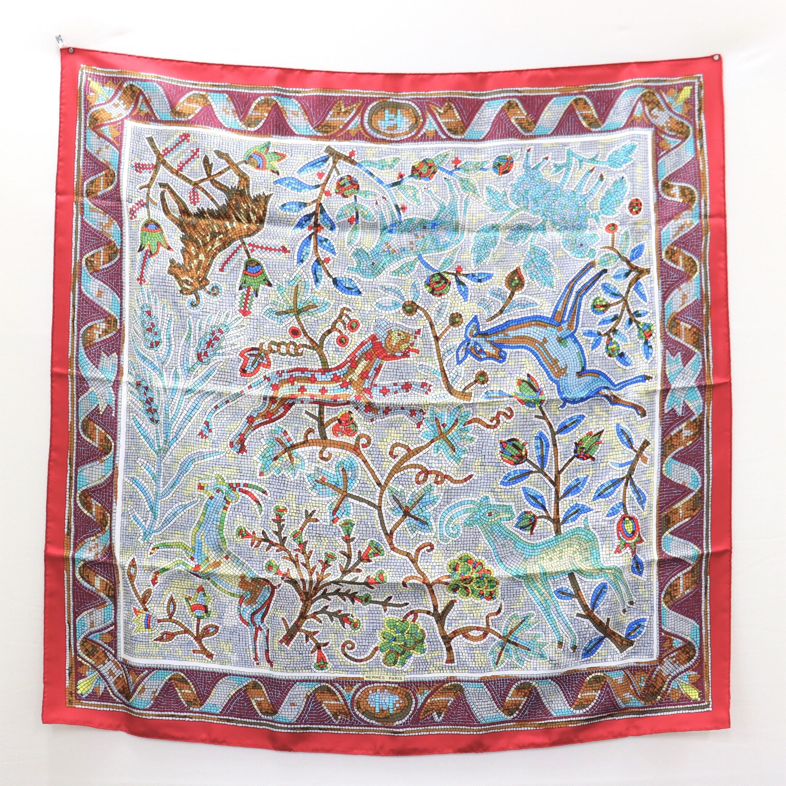 美品 HERMES エルメス カレ90 ペイブメント Pavement モザイク 動物 ヤギ 羊 鹿 豹 スカーフ 大判ショール 22-8181