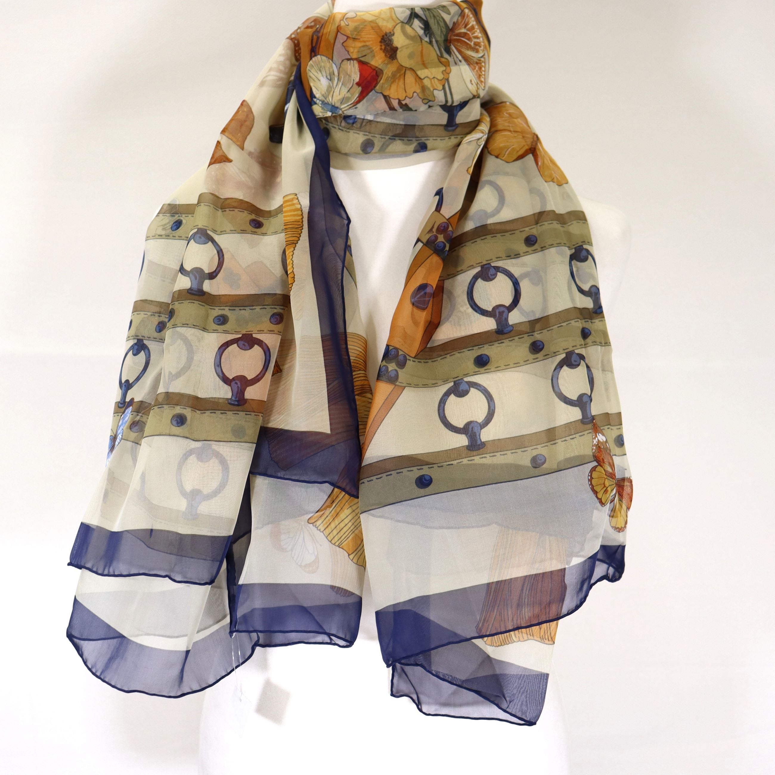 美品 HERMES エルメス シフォン モスリン カレ140 カレジェアン 天地の踊り Farandole des Champs シルク 大判ショール 0469